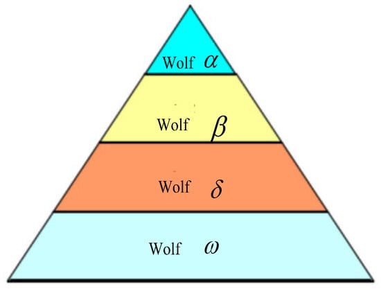 The grey wolf with the highest social level is called , which has the highest ruling status and absolute dominance over other wolves. The second- and third-ranked gray wolves in a social hierarchy are called wolf and wolf. The lowest-level wolf in society is called wolf, which needs to obey the other levels of wolves with the role of preventing self-killing within wolf packs. The stages of GWO are [47]: