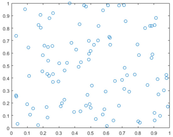 From Figure 8, we can make out that the final place of the candidate wolf is located within the stochastic circle positions defined by , and . wolf is behind the general orientation of the prey target predicted by the three higher-order gray wolves , and at this time, which is the position of any new higher-order gray wolf around the prey.