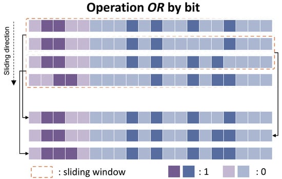 The encoded data feature follows the SDR structure, according to which similar data (e.g., and ) hold more than a few overlapping one bits. The purpose of feature smoothing is to gather as many semantics as possible among previous data records to enhance semantic expressiveness, compensating for the lack of semantic information caused by the subsequent binary feature reduction. The idea of feature smoothing is to apply a sliding window (whose size is ) to combine features from to by an “or” operation. The “or” operation combines corresponding bits to a one bit if a one bit exists, else to a zero bit. Since the overlapping of one bits holds semantics among data features, the sliding window, indeed, propagates semantics from the current feature to the next feature. The following equation defines the feature smoothing with a sliding window: