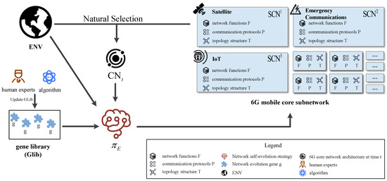 With these rewards, the pipeline repeatedly optimizes the gene library, , the gene composition plan for SCNs, and the agent evolution policy. Once convergence is achieved, the newly produced architecture of the 6G core network is deployed to replace the old one, completing a cycle of evolution.