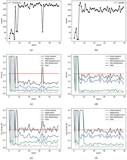 In dynamic environments, service composition needs to support the recovery service-based applications from unexpected violations of not only function but also QoS, and the key factor in deciding which microservices are appropriate to be combined is their ability to provide a more modular and scalable service function with high performance and efficient resource consumption. Therefore, the reward, , for evaluation takes into account two factors: (1) whether or not the composed network elements, , can form a complete SCN that meets the functional requirements of the core network; (2) whether or not the tasks are completed with high Quality of Service (QoS). In other words, , where mainly includes a reward for completing a signaling process and each step taken in the network evaluation stage. is determined by network performance, including CPU occupancy, time latency, and specific rewards for different tasks.