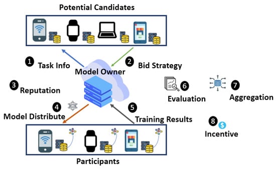 Like economics, an FL contract is designed between a server (employer) and data owners (employees). The server cannot always be assumed to know the data owner’s resources, data size, and quality. To overcome this issue of information asymmetry, the studies in [20,21,34] adopted contract theory to attract high-quality users. Contract-based selection can enhance participation and model quality; however, it only focuses on optimizing the user’s utility/reward.