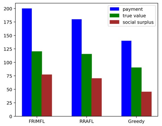 The social surplus is relatively higher in the proposed mechanism due to increased participants’ desire to select reverse auction. The cost–benefit makes the FL service more active. The Shapley method allows the measuring of client contributions and their impact on the overall performance of the model. Our mechanism implicitly assumes a predetermined incentive budget. However, this might not hold in practice in later training periods [12]. As for future works, a reimbursement option with dynamic incentivizing for long-term participation in diverse scenarios could be investigated. Additionally, the budget restriction only applies to the payments that the system employs to hold truthfulness. The convergence of the model is affected by the influence of negative/malicious clients since they produce misleading gradients. Spoofing attacks with robust defense can also be explored to complete the definition of security in incentive schemes.