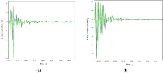 Time response comparison of main (a) and backup (b) accelerometers in node 5.