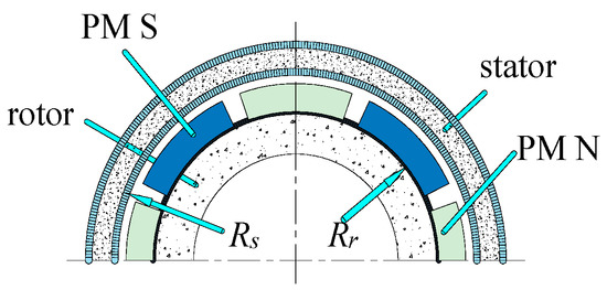 Topologies model of the internal rotor SPMSM with the M-SUEPM.
