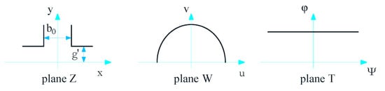 Based on the single-slot model shown in Figure 9, the graph of the air gap region in the complex plane Z is transformed into the graph of the W plane through function transformation, and then the graph shown in the T plane is obtained through function transformation.