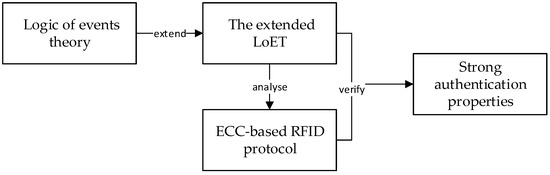 The rest of the paper is organised as follows: Section 2 describes LoET, including the basic concept, proof system, and extension of LoET. Section 3 introduces the ECC-based RFID protocol. In Section 4, the proof of the mutual authentication property of ECC-based RFID protocol is elaborated in detail, and finally, our conclusions and suggestions for future work are given in Section 5. The specific framework is shown in Figure 1.