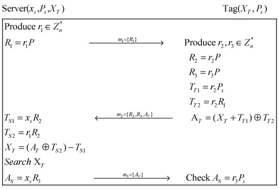 - Pan, Y.; Shan, Z.; Dai, Q.; Yue, F. CPK-ECC based mutual authentication protocol for large-scale RFID system. J. Commun. 2017, 38, 165–171. [Google Scholar]