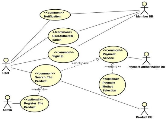 - Moon, M.; Yeom, K.; Chae, H.S. An approach to developing domain requirements as a core asset based on commonality and variability analysis in a product line. IEEE Trans. Softw. Eng. 2005, 31, 551–569. [Google Scholar] [CrossRef]