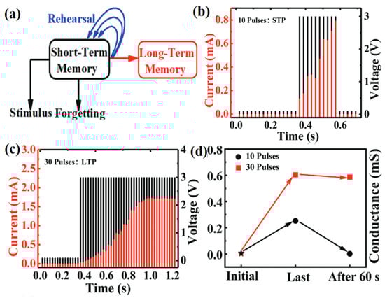 - Yun, S.; Mahata, C.; Kim, M.H.; Kim, S. Artificial Synapse Characteristics of a ZnO-Based Memristor with a Short-Term Memory Effect. Appl. Surf. Sci. 2022, 579, 152164. [Google Scholar] [CrossRef]
