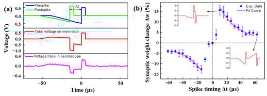 - Li, Y.; Zhong, Y.; Zhang, J.; Xu, L.; Wang, Q.; Sun, H.; Tong, H.; Cheng, X.; Miao, X. Activity-Dependent Synaptic Plasticity of a Chalcogenide Electronic Synapse for Neuromorphic Systems. Sci. Rep. 2014, 4, 4906. [Google Scholar] [CrossRef]