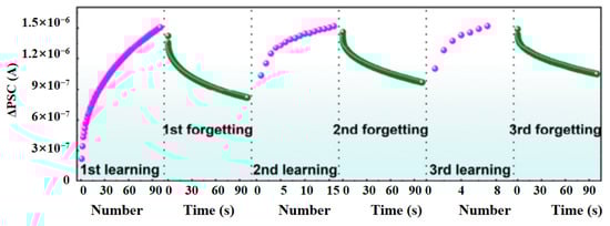 - Li, R.; Dong, Y.; Qian, F.; Xie, Y.; Chen, X.; Zhang, Q.; Yue, Z.; Gu, M. CsPbBr3/Graphene Nanowall Artificial Optoelectronic Synapses for Controllable Perceptual Learning. PhotoniX 2023, 4, 4. [Google Scholar] [CrossRef]
