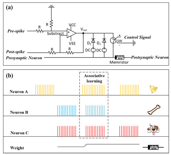 - Du, S.; Deng, Q.; Hong, Q.; Li, J.; Liu, H.; Wang, C. A Memristor-Based Circuit Design and Implementation for Blocking on Pavlov Associative Memory. Neural Comput. Appl. 2022, 34, 14745–14761. [Google Scholar] [CrossRef]