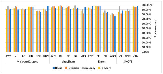 Many researchers have examined distributed machine learning techniques [57,58] and found that they significantly reduce the complexity of high dimensional data. These researchers have demonstrated the advantages of utilizing ML algorithms to handle enormous amounts of data for the IDS pre-processing step. However, DL algorithms could access hidden features in the step that classified anomalies from many targets to find unidentified attacks. They achieve the highest rates of false alarm, false negative, and detection, and they greatly outperform state-of-the-art technologies while consuming the least time when applied to many datasets.