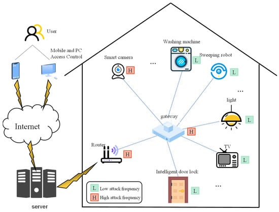 There is currently a limited amount of research focusing on smart home security, with most studies primarily concentrating on hardware design and passive defense measures. For instance, the authors of [3] propose a method for privacy risk assessment and risk control measures to address privacy security concerns. The authors of [4] describe a provable security authentication scheme to ensure the security of the smart home environment. These studies, which are passive defense mechanisms, can improve the security of smart homes to some extent, but they do not fully address all the security issues.