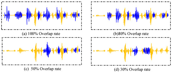As can be seen from Figure 6, the four different groups of speech overlap rates present different speech styles, and speech separation is a good separation scheme for the task of separating speech overlap segments. Additive sparse mixing of speech with different overlap rates is performed, which is useful for the study to improve the generalization of different speakers. It is obvious from the different speech overlap rates that increasing the size of the training data gradually improves the overall performance. Adding them to the model training further improves the DER from 12.91% to 12.78%. However, if the channel adversarial training strategy is not used, its experimental results are changed in this study. The comparison of the results by removing the D2 module from the CAT framework in this study is shown in Table 1.
