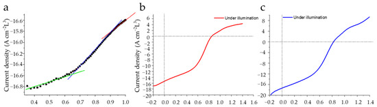 Therein, ε0 is the permittivity of vacuum, εr is the relative permittivity of the organic compound, μ is the charge carrier mobility, V is the voltage, and L is the thickness of the tested layer. The estimated electron mobility is 5.23 × 10−6 cm2 V−1 s−1, which is more than two orders of magnitude lower than that of 1-(3-methyloxycarbonyl) propyl (1-phenyl [6,6]) C61 (PCBM, µPCBM = 1.22 × 10−3 cm2 V−1 s−1) [25].
