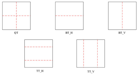 Table 1 provides the distribution of CU sizes in VTM-10.0 [25]. Table 1 clearly indicates that no segmentation (NS) is the preferred option for the majority of CU sizes. TT_H and TT_V partitioning only account for a small proportion, whereas horizontal and vertical partitioning together account for a larger proportion.