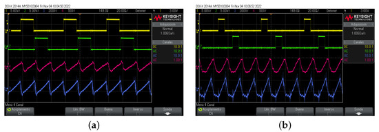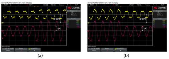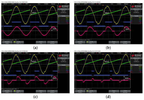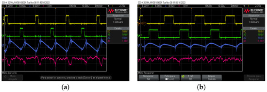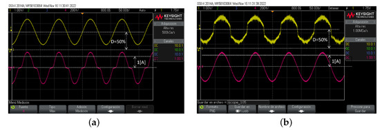 Finally, the signals , , are in Figure 21 for D = 10 and 30. Hence, this test validates the use of the platform for this isolated power electronics topology.