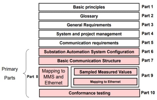 - Horalek, J.; Matyska, J.; Sobeslav, V. Communication protocols in substation automation and IEC 61850 based proposal. In Proceedings of the 2013 IEEE 14th International Symposium on Computational Intelligence and Informatics (CINTI), Budapest, Hungary, 19–21 November 2013; pp. 321–326. [Google Scholar] [CrossRef]
