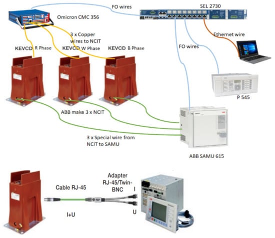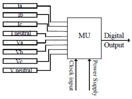 Figure 10 exhibits the working principle of MU, which receives several inputs from CITs []. The MU converts the analogue signals into digital signals that are transmitted to IEDs via a managed switch over FO or Ethernet cables. Substitution of NCITs in place of CITs could offer high accuracy and data acquisition using SVs. The advantages of NCITs over CITs include their immunity to saturation due to the absence of a magnetic iron core and their insensitivity to thermal and mechanical stresses. Moreover, it is environmentally friendly, as there is no requirement to fill NCIT with SF6 or insulating oil. Additionally, there is a reduced civil and structural footprint of the plant using NCITs []. NCITs have reduced errors as opposed to CITs, which are vital for automation, protection and relaying in a SAS environment. However, in order to make it widely acceptable in the industry, all scenarios need to be modelled and experimented in a laboratory environment first [].