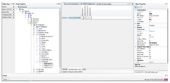 Conventional substation protocols exhibit issues with expansion, version upgrades and data transfer due to changes in the software and the availability, accuracy, and reliability of the data. These issues have been addressed in the IEC 61850 protocol, which provides flexibility in monitoring, automation and optimization in operation. For example, IEC 60870-5 usually communicates via SCADA in a master–slave mode within an electrical substation for the control and acquisition of data on serial lines or TPC/IP between power centers over WAN networks, which slows down the communication when the transferred data are large. This is not the case when dealing with IEC 61850 []. IEC 61850 is a standard published by the IEC technical group TC 57 that could encompass the protection, measurement, control, automation and condition monitoring of substation assets.