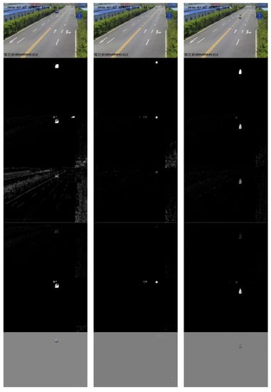 Under stationary cameras, there would always occur a high false detection rate and a low missed detection rate in the extraction of all foreground regions of moving objects in the scene by using the existing temporal frame difference methods [14,15,16] and spatial background modeling methods [25].