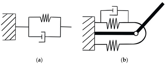 Representation of (a) single muscle with the Kelvin–Voight model and (b) biceps and triceps muscles as system of spring-damping elements.