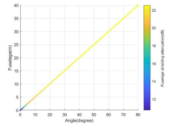 Due to the large size of the aircraft, the large amount of metal and electronic equipment loaded inside, the partial blocking of the surrounding radio signals by the aircraft itself, and the attenuation effect of the radio signals bypassing the fuselage, it is necessary to consider the effect of the shielding characteristics of the aircraft on the isolation level. Thus, the introduction of the shielding factor yields the following []: