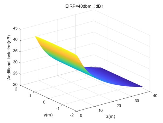 Additional isolation required for EIRP = 40 dBm, = 3 dB, = 20 dB.