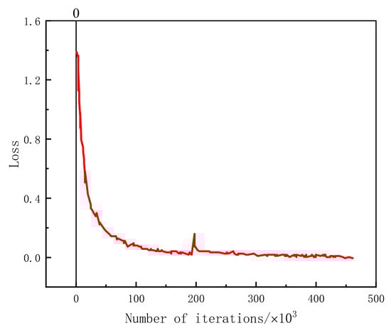 - The J obtained from the data image input to the neural network is often a large number, which means that there is a certain deviation between J and 0. This deviation is passed from the output layer to the input layer through the backpropagation (BP) algorithm [35], in which the weights and biases in the network model are finely adjusted, based on the gradient, to reduce the value of J.