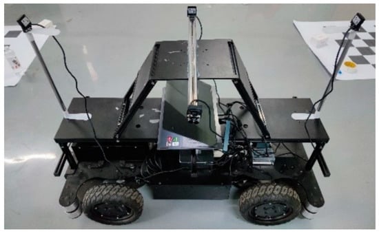where and represent the coordinates of the projection position of the camera lens’s optical axis in the pixel coordinate system; is the internal reference matrix of the camera; , , denotes the focal length of the camera, while and denote the width and height of the unit pixel, respectively.