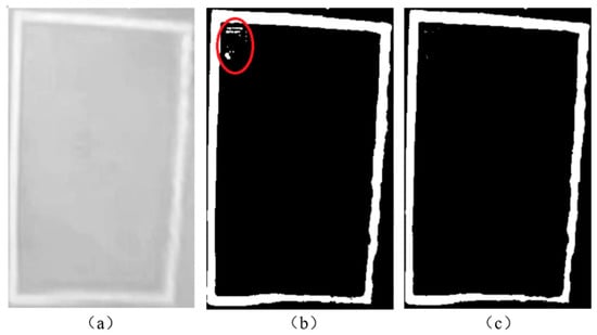 Morphological processing results. (a) Binarized images (b) Open operation (c) Closed operation.