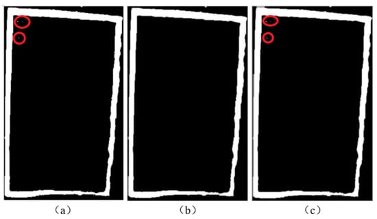 In the morphological processing of images, both open and closed operations consisting of expansion and erosion are able to smooth the surface of the target object, with little effect on the overall size of the target. Figure 18 shows the results of the open and closed operations on the binarized image. The red circle indicates areas with small noise.
