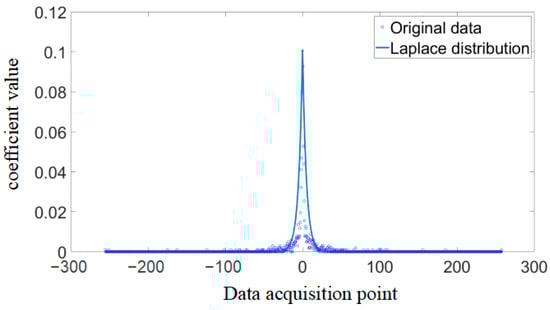 As the negative DCT coefficient in Figure 1c is shifted from the second quadrant and reversed to the fourth quadrant, it can be seen from Figure 2 that the distribution of such a DCT coefficient is very similar to the Laplace transform. In Equation (2), represents the probability distribution of the DCT coefficient, which resembles the Laplace distribution .