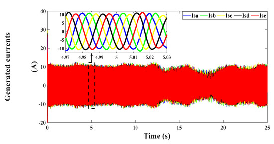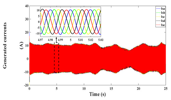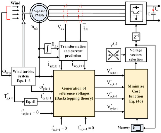 The dynamics of the surface mounted five-phase PMSG can be represented using the following formulas [29,30]: defined in the rotating (d-q-x-y) synchronous frame and defined in a discrete form at instant kTs