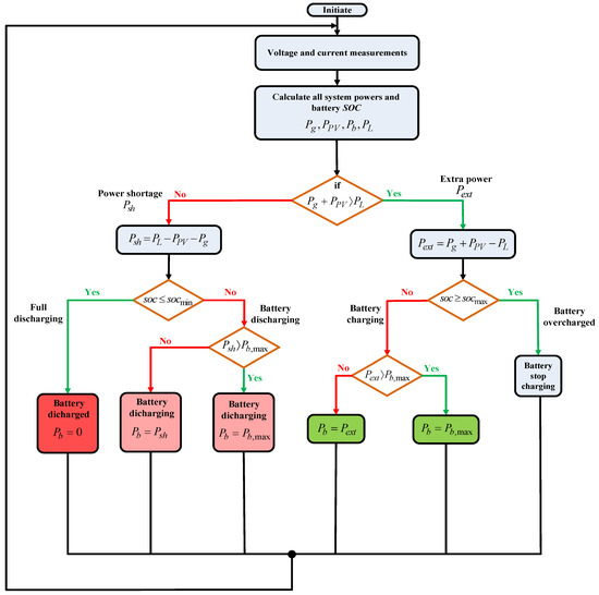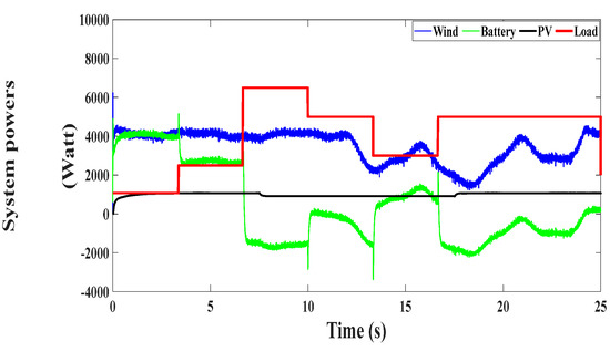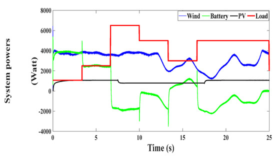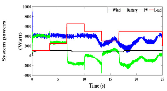 Alternatively, renewable energy systems can come in another form in which they are disconnected from the grid but feed remote, isolated loads [4]. These types can consist of only one generation unit. However, these types are not so favored due to their reduced reliability and limited generation of power [5]. Consequently, the orientation towards hybrid renewable systems is given higher attention. Higher dependability and increased load ratings are provided by hybrid systems [6,7]. In general, these systems comprise multiple generation units [8]. Additionally, due to natural weather conditions, hybrid systems are usually linked with storage devices such as batteries, fuel cells, and flywheels [9]. Accordingly, a proper power management system should be present to ensure smooth power exchange between all system components.