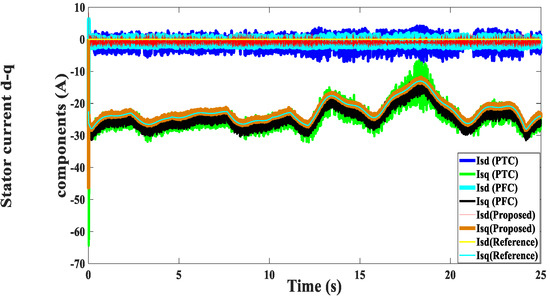 - Li, G.; Hu, J.; Li, Y.; Zhu, J. An Improved Model Predictive Direct Torque Control Strategy for Reducing Harmonic Currents and Torque Ripples of Five-Phase Permanent Magnet Synchronous Motors. IEEE Trans. Ind. Electron. 2018, 66, 5820–5829. [Google Scholar] [CrossRef]