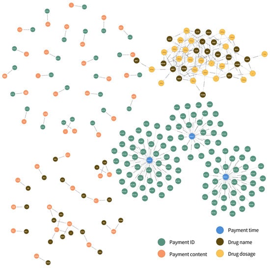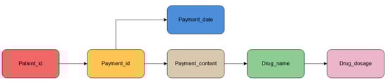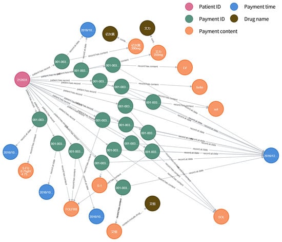 It is noticed that the at field is not a field commonly found in relational tables. This is because, in this study, different patients may use the same medication, but the dosage of the medication varies from person to person, and the dosage of a certain patient may also vary depending on the course of treatment and the condition. If no distinction is made, the structure of the knowledge graphs will be confused, and the required information cannot be found correctly. Therefore, we have added the field to save the primary key of the record where the relationship is located in the original database (i.e., the payment ID) to distinguish it.