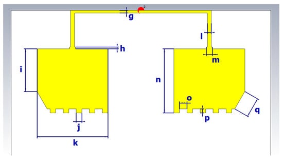 The MIMO antenna seen in Figure 2 has a width of 109.74 mm and a length of 146.5 mm (see Table 1). The thickness of the dielectric substrate layer is 1.524 mm. The permittivity value of the Isola dielectric material is εr = 3.