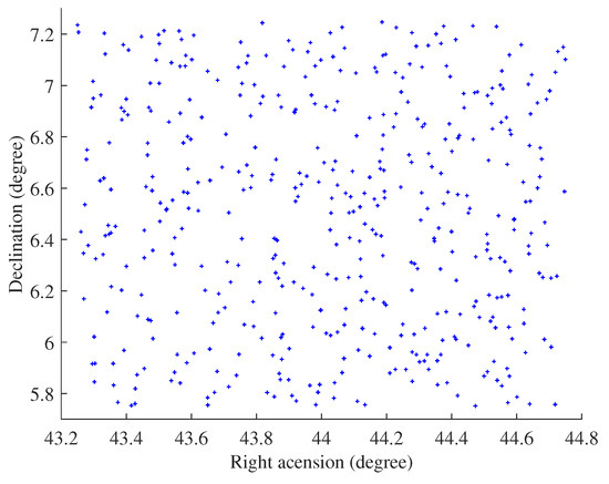 A sky region of the GaiaDR2 star catalog was selected for the simulation experiment, as shown in Figure 9.
