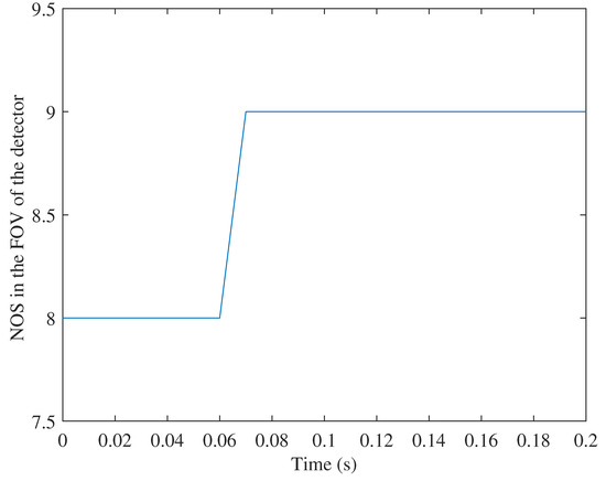As seen in the figure, due to modeling errors, the NOS in the FOV obtained from the polynomial model was eight when it was input into the FGS simulated detector system. However, after introducing the closed-loop adjustment mechanism, the exposure time was adjusted accordingly to make the NOS in the FOV of the detector reach the target value.