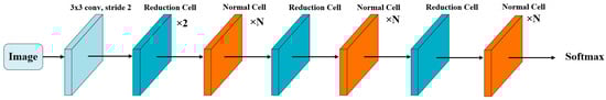 - Zoph, B.; Vasudevan, V.; Shlens, J.; Le, Q.V. Learning Transferable Architectures for Scalable Image Recognition. In Proceedings of the 2018 IEEE/CVF Conference on Computer Vision and Pattern Recognition (CVPR), Salt Lake City, UT, USA, 18–23 June 2018; IEEE: New York, NY, USA, 2018; pp. 8697–8710. [Google Scholar]