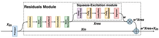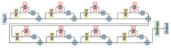 In this paper, we utilize the SE-ResNet18 architecture, which incorporates the SE module into ResNet18. Additionally, we replace the ReLU activation function with the LeakyReLU [22] activation function to improve the model’s robustness and generalization. Equation (16) shows the expression for the LeakyReLU activation function: