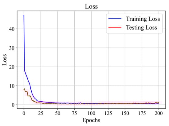 This paper proposes using a conditional variational autoencoder (CVAE) to augment a limited number of original fault samples. The dataset comprises 550 samples, divided into 21 fault categories and a normal category, each containing 25 sample files. For model training and validation, we divide these data into a training set and a test set. The CVAE model takes the original acquisition sample data as input and uses a loss function composed of KL divergence loss and reconstruction loss. The CVAE model is trained until the loss converges, and then an equal number of enhanced samples as the original samples are generated from the saved model. Figure 14 shows the training and testing loss curves for the CVAE model.