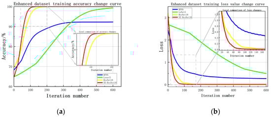 Training accuracy and loss variation curves using augmented dataset. (a) Accuracy variation curve; (b) Loss variation curve.