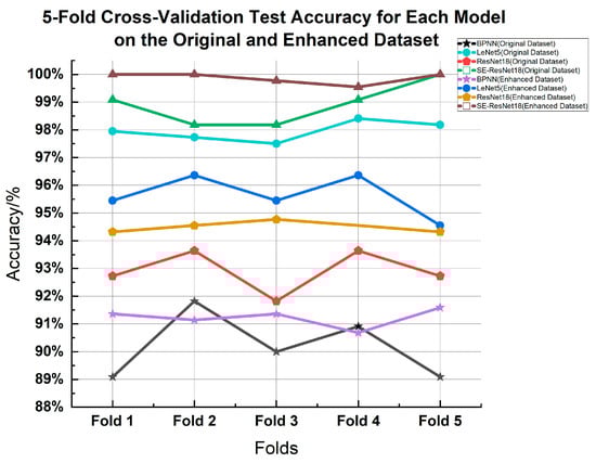 Five-fold cross-validation test accuracy for each model on the enhanced dataset.