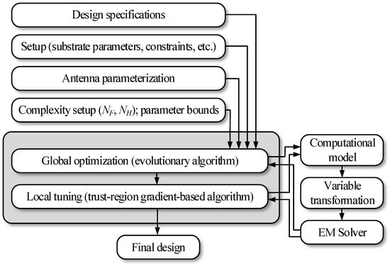 Flow diagram of unsupervised antenna development using optimization tools and parameterization of Section 2.2.