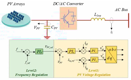 Two-level control structure for PV frequency regulation.