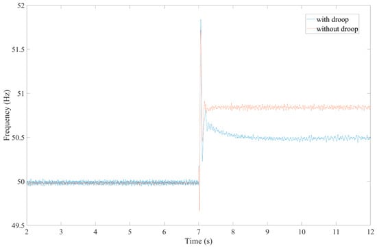 The system frequency with/without PV droop control strategy.